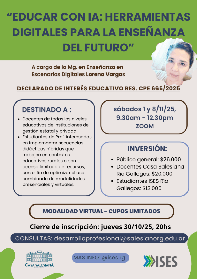 Los invitamos a participar del seminario-taller «Educar con IA: Herramientas Digitales para la Enseñanza del Futuro», a cargo